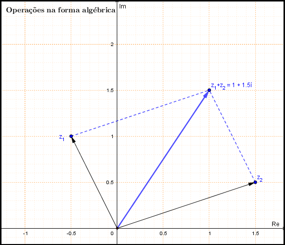 Um applet do Geogebra que mostra a interpretação geométrica para as operações com números complexos na forma algébrica.